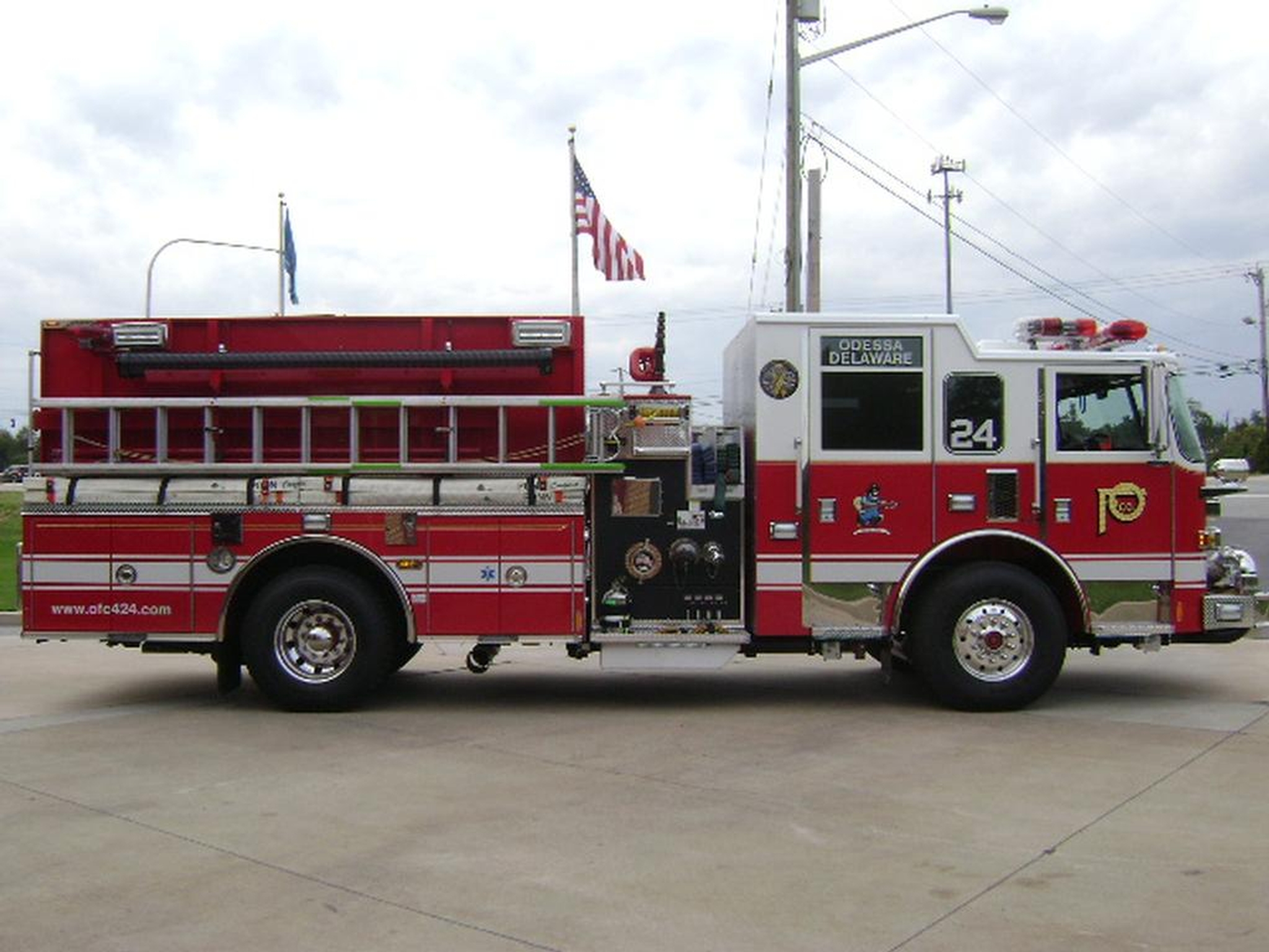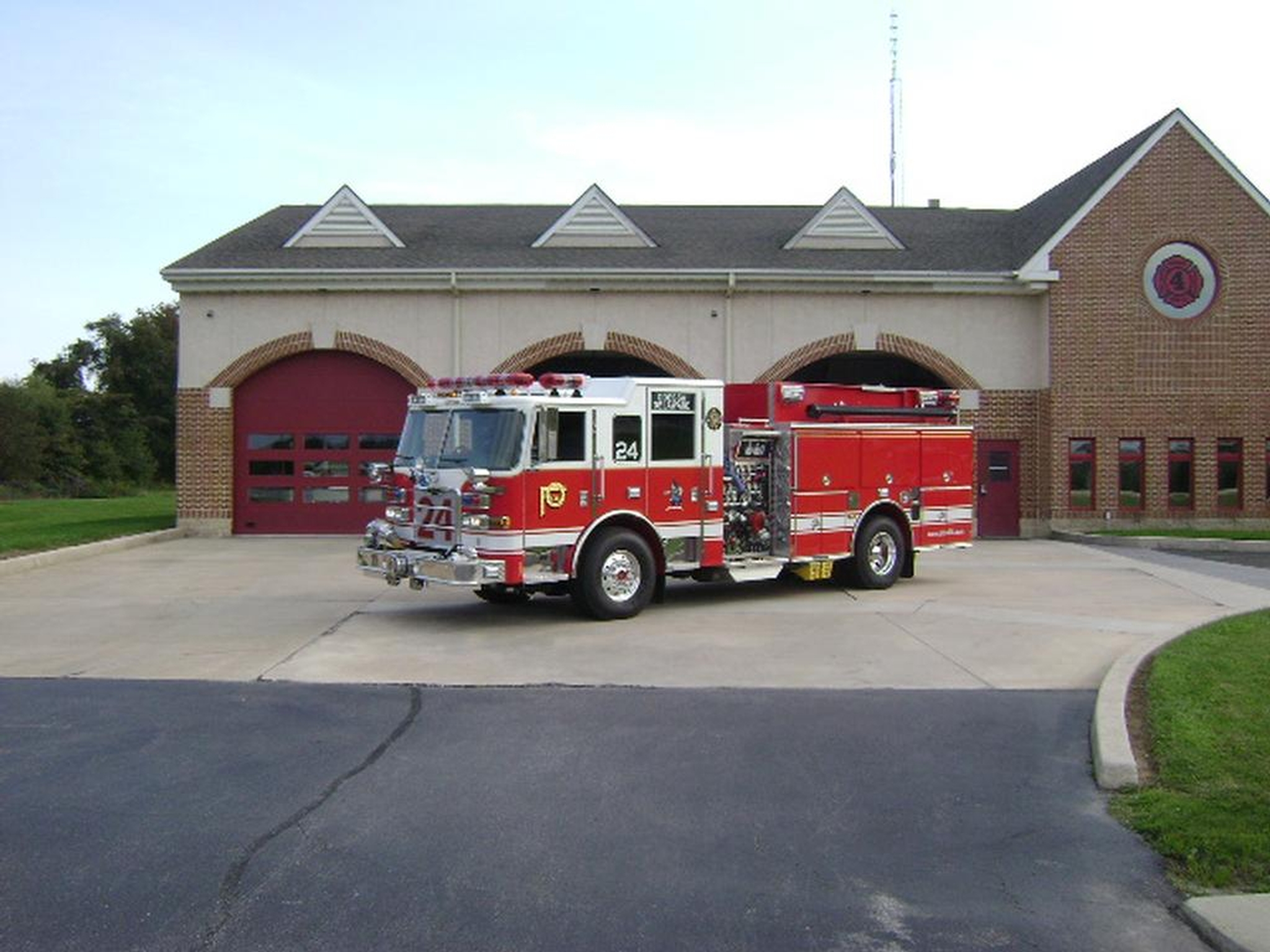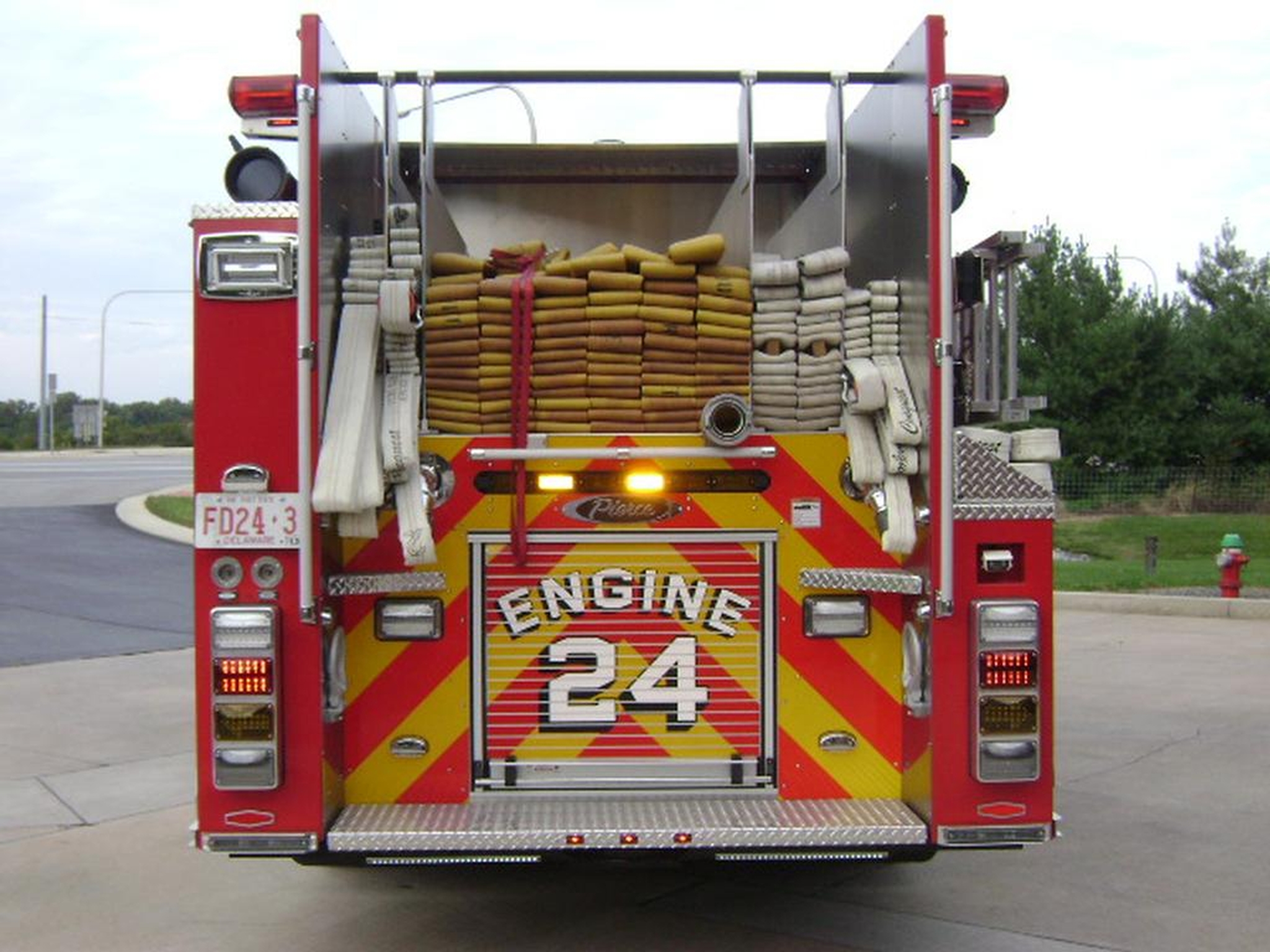 Engine 24-3 is a Pierce 2012 Arrow XT with TAK-4 suspension, 6 personnel cab seating with a raised roof and a Detroit DD13 500 hp diesel engine. The pump is a Waterous 1500 GPM single stage pump with a 1000 gallons water tank and a portable foam pack. The truck carries an additional 5 gallons of foam and has a Harrison 10KW PTO driven generator. Wireless Firecom communication headsets, weather band CD/AM/FM radio capable of route alerting and onscene Explore Mapping system.